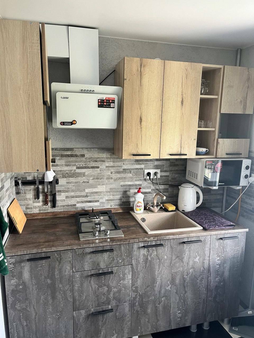 — Холодильник — Кондиционер — Санузел в каждой комнате — Удобные кровати —Новое свежее постельное—хорошая шумоизоляция—Wi-Fi—TV—Кухонные принадлежности.