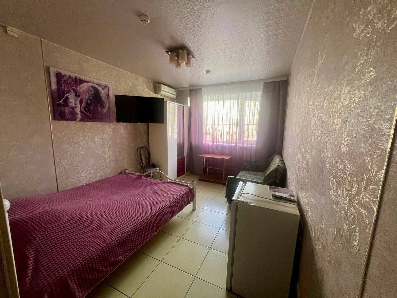 В номере есть личный душ, туалет, кухонный уголок( микроволновка,электрический чайник,холодильник), Wi-Fi, TV, 3 двуспальные кровати, 3 кровати размером 1,5 для одного человека. Количество номеров : 1 номер.